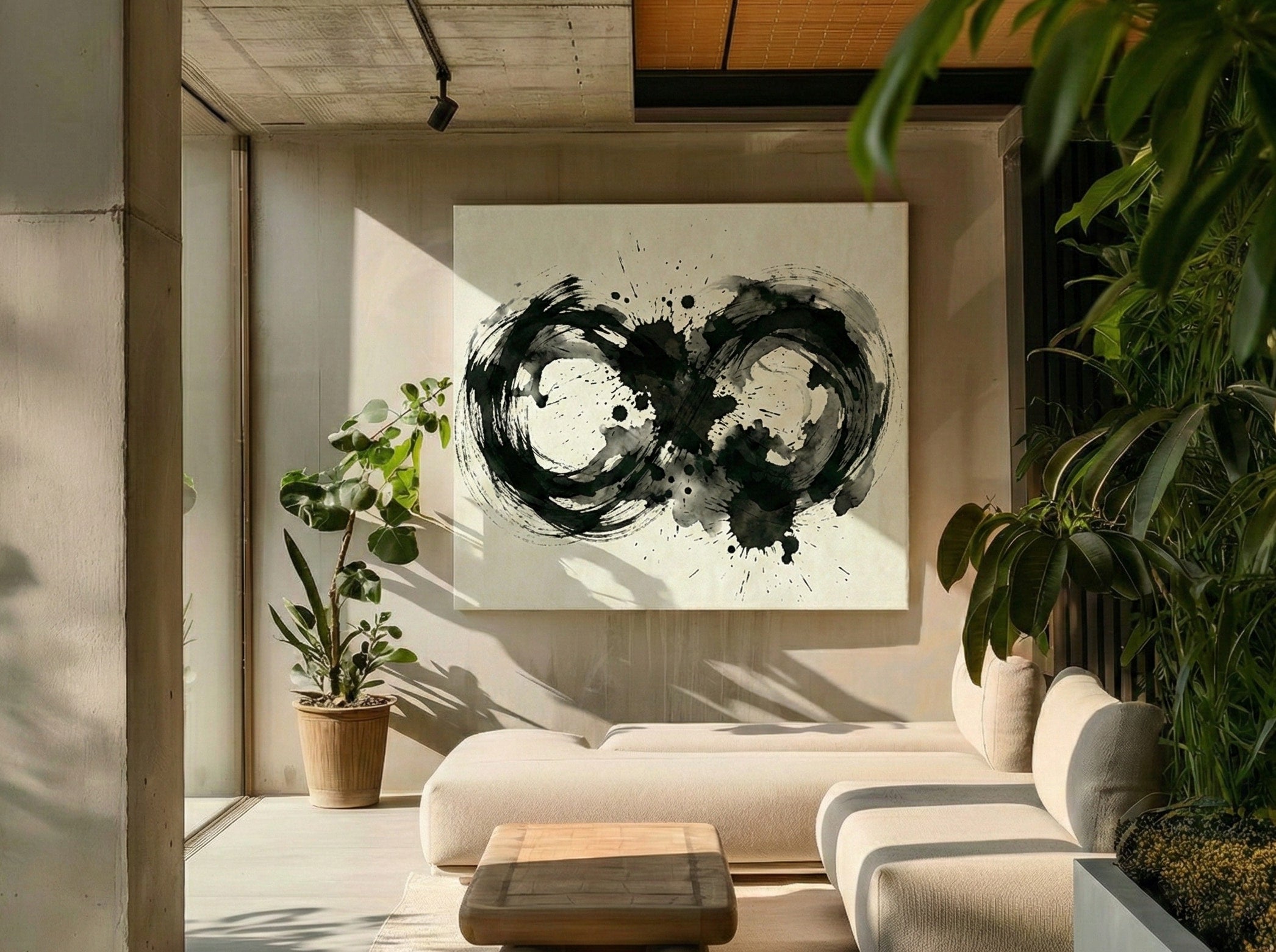 Bold, monochrome abstract art inspired by Zen tradition and modern minimalism. Elevate your home with purposeful design.